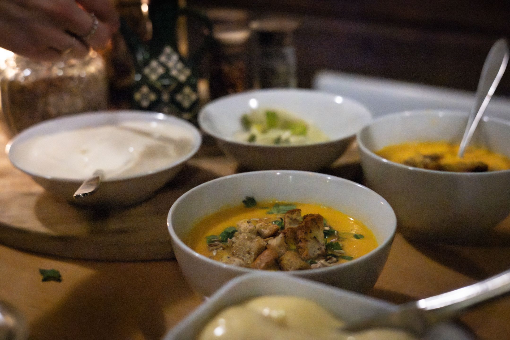 Etter spilleøkten får deltakerne servert en bedre lunsj bestående av hjemmelaget gulrotsuppe med spennende topping og nystekt surdeigsbrød.